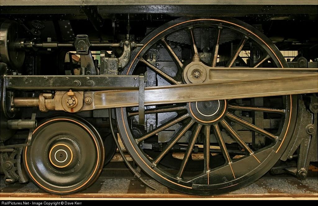 | Detail of a drive wheel, rods and linkage of the PRR E-7, built in 1902. |