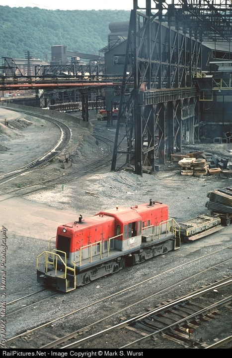 A narrow gauge GE centercab switcher works the west end of the Bethlehem Steel plant in Johnstown.