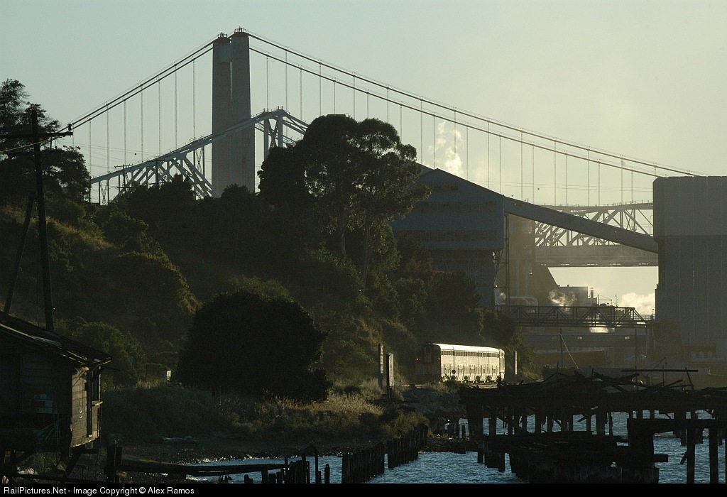 | An Amtrak California Capitol Corridor train is easy to spot in this frame thanks to the sun. In the photo you can spot the Carquinez Bridge in the backround and also part of the C&H Sugar Factory. Nikon D70 70-200mm. www.bayarearailroading.com |