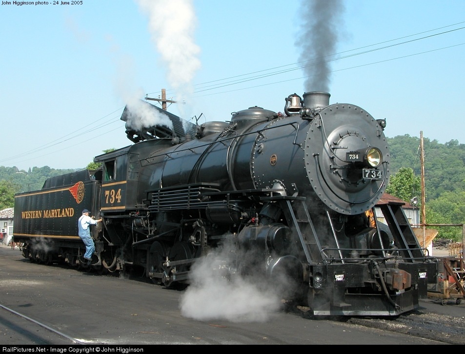 RailPictures.Net Photo: WMSR 734 Western Maryland Scenic Railroad Steam 2-8-0 at Ridgeley, West Virginia by John Higginson