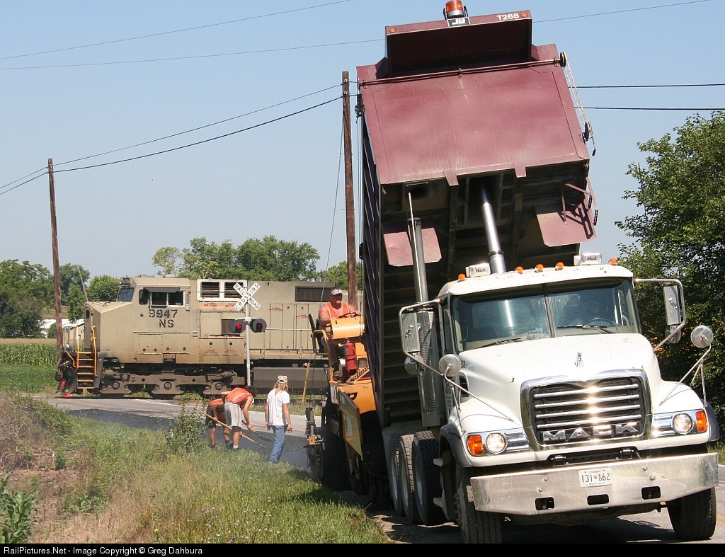 | Big Mack meets big GE. I didn't have time to set up for my shot due to the construction, so I tried something different than the roster shot or 3/4th wedgie I was going to take. That man in the middle got style, taking a little break to see the train. |