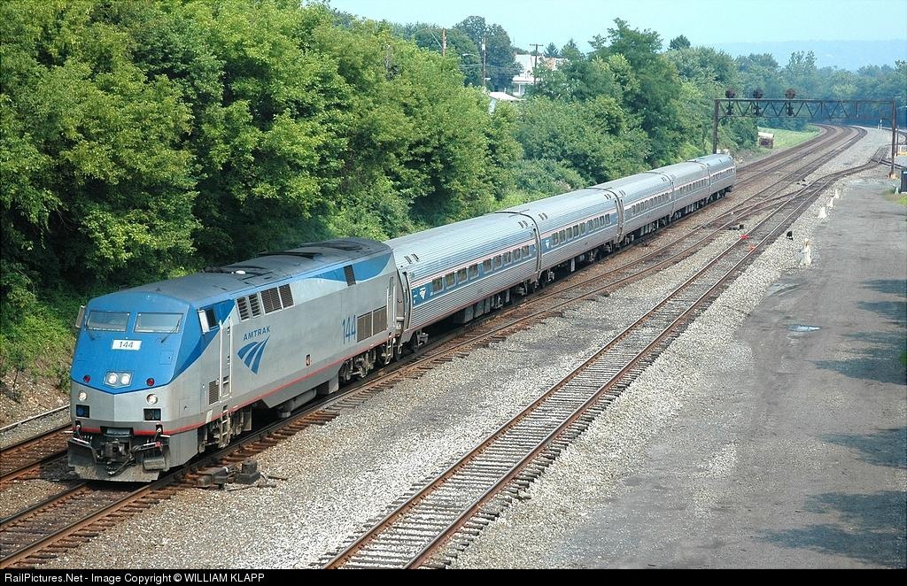 RailPictures.Net Photo: AMTK 144 Amtrak GE P42DC at Mifflin, Pennsylvania by WILLIAM KLAPP