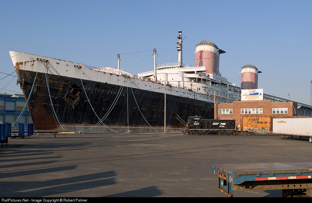 The NS 2106 switches the Delaware River piers in the shadow of the SS United States. The SSUS has been mothballed in Philly since 1996.