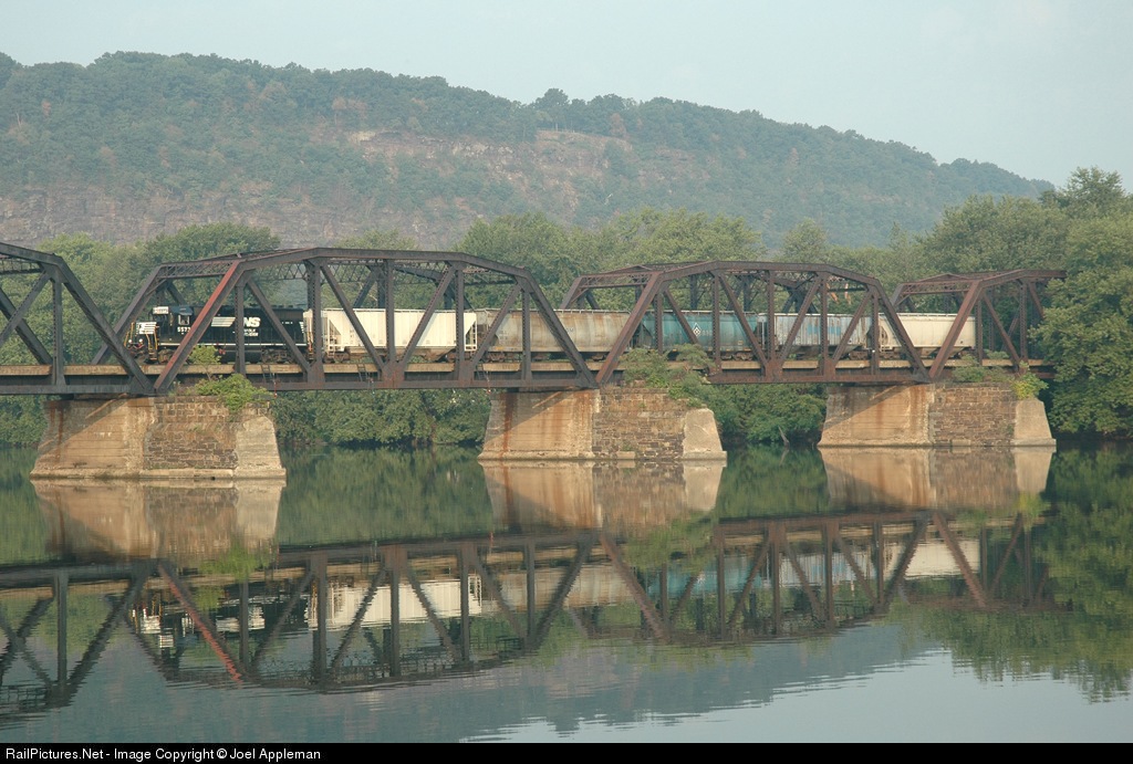 NS 5573 with 5 cars heads south over the Susquehanna River after leaving Northumberland Yard. Nikon D70 with 18-70mm lens.
