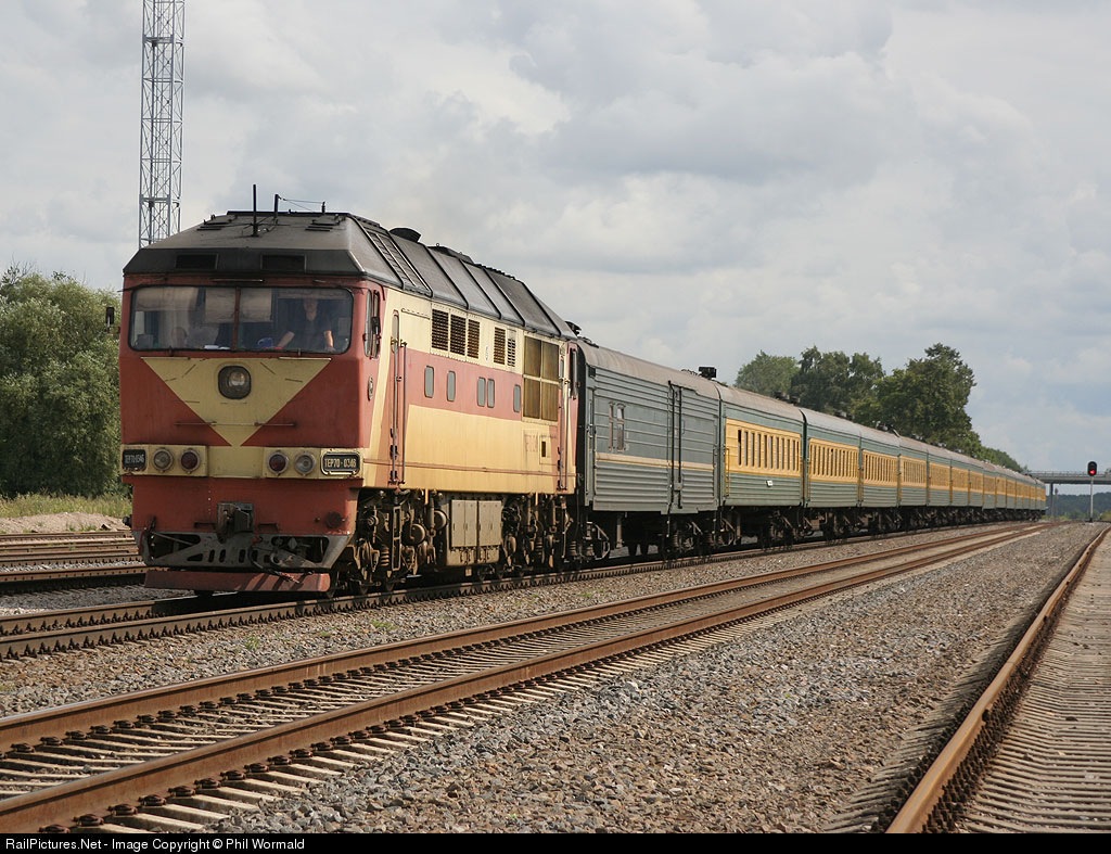 A rare photo of one of the Russian "Transit" trains passing Lithuania. TEP70.0346 passes Mauruciai on train 79 from St. Petersburg to Kaliningrad. For many more new Latvia & Lithuania photos see www.loco-photos.net
