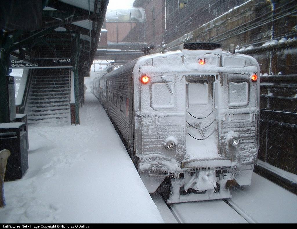 The rear of a snow covered train in Summit during an early December freak blizzard in 2003.