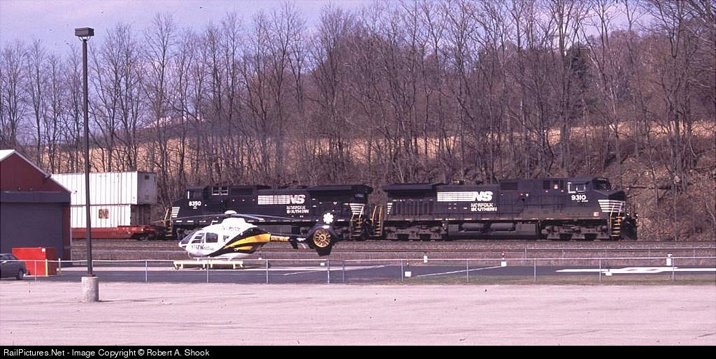 NS 20G passing a Medi-Vac heliopter awaiting it's next tour of duty!