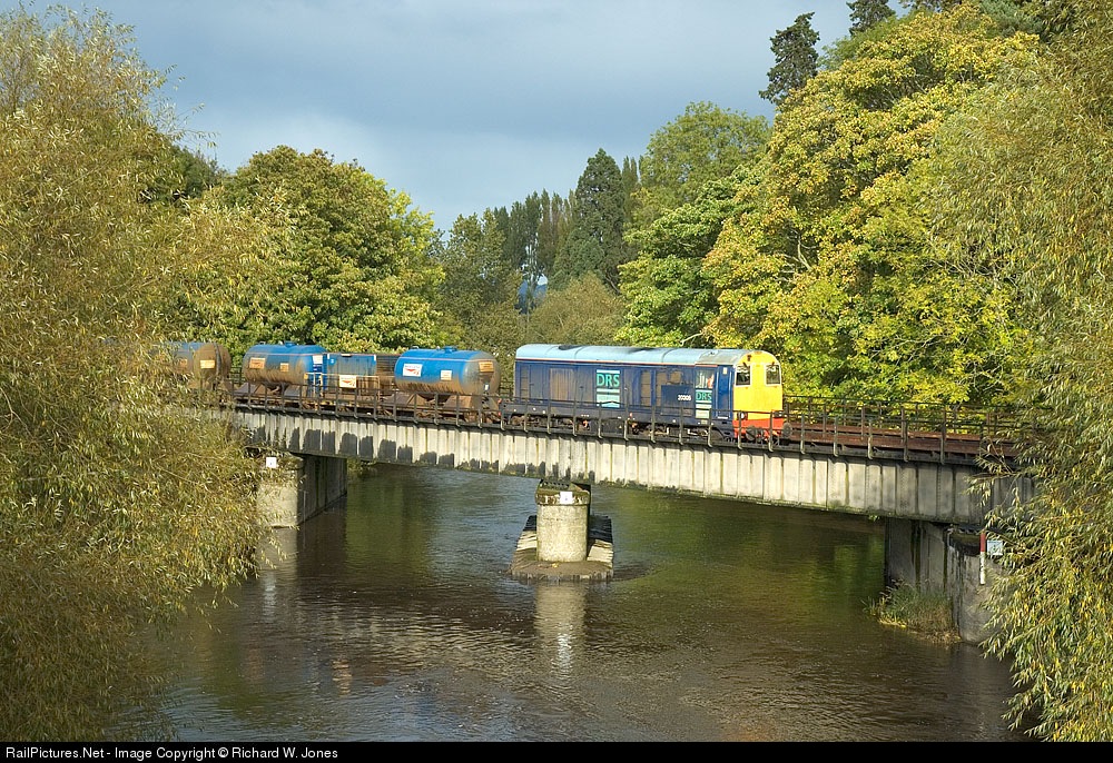 | The first photo of this train up the Cambrian in any sun, which came out seconds before the train passed. 20305 crosses the River Severn at Cilcewydd on the Machynlleth leg of the circular 1Z96 13.24 Crewe Gresty Lane railhead treatment train. |