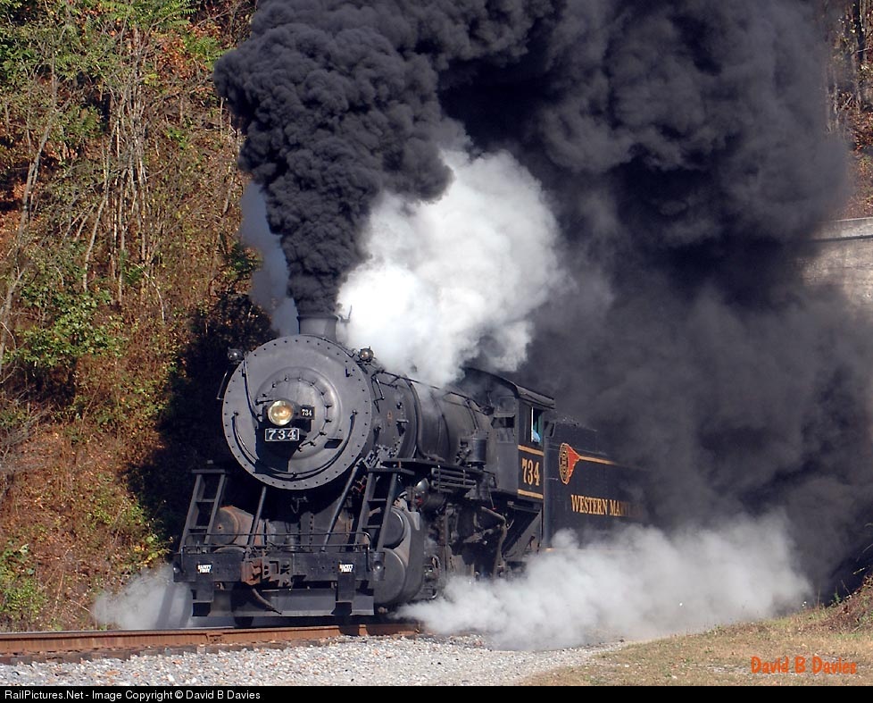 RailPictures.Net Photo: WMSR 734 Western Maryland Scenic Steam 2-8-0 at Cumberland, Maryland by David B Davies