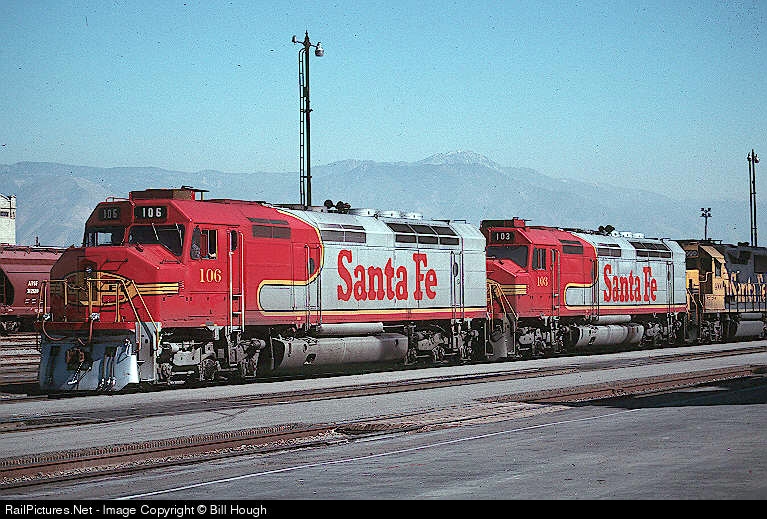 RailPictures.Net Photo: ATSF 106 Atchison, Topeka & Santa Fe (ATSF) EMD FP45 at San Bernardino, California by Bill Hough