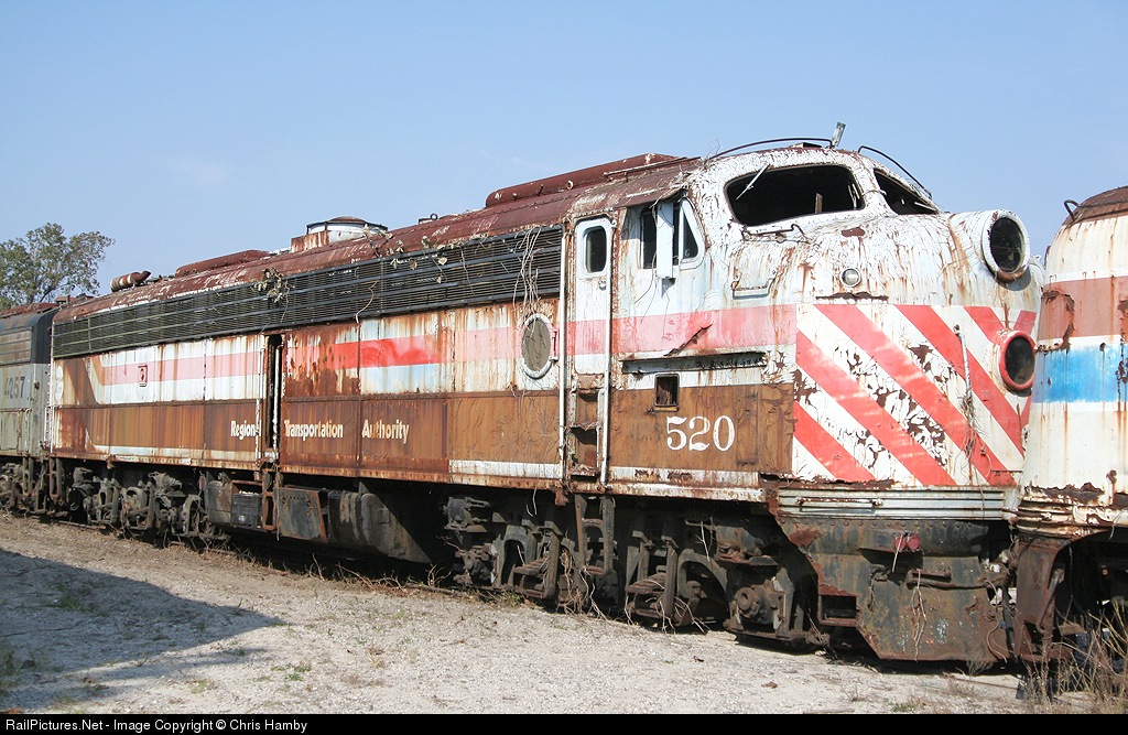 Ex-RTA E8 unit pulled out from the brush today getting ready for the scrapping torch. History: ex RTA 520, ex C&NW 520, nee C&NW 5022B, EMD serial 11494, built 7/50