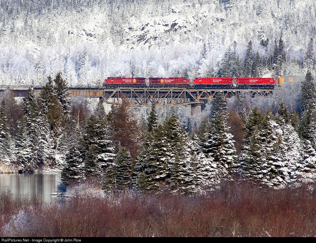 CP 103 crossing the Nipigon River with 2 97 series and 2 87 series locomotives.