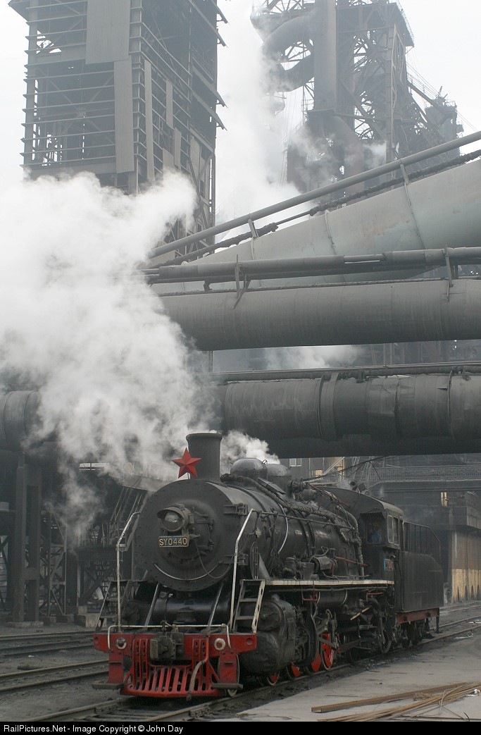 | The steel mill at Anshan covers 35 sq km and boasts steam, diesel and electric power. Here SY 0440 waits for its next job, deep inside the mill. |