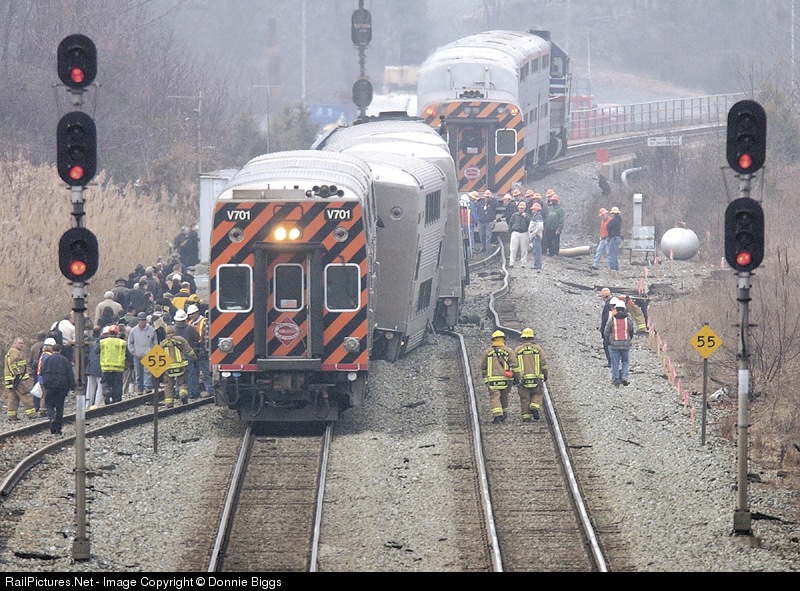 VRE train 304 derailed on a switch at Possum Point at 645AM. The train in the background is taking the passengers back south towards Fredericksburg area stations.