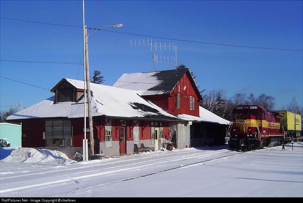 MMA's only repainted engine idles at Jackman Station, waiting for permission to cross into Canada.