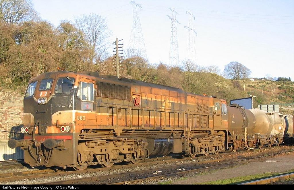 | 082 shunts an oil tank & cement wagons. Rail freight in Ireland has been on the decline for a number of years while passenger services are increasing. For more see: www.garystrainz.fotopic.net |