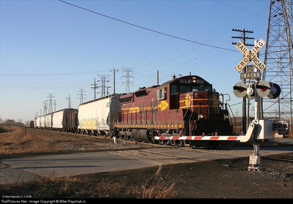 #814 heads a mixed freight east to Kirk Yard on the EJ&E Lakefront Line.