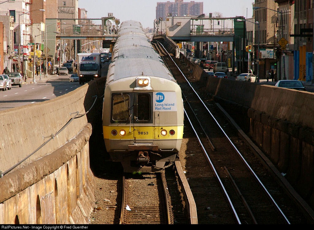 LIRR M3 train leaving Nostrand Avenue station and headed east