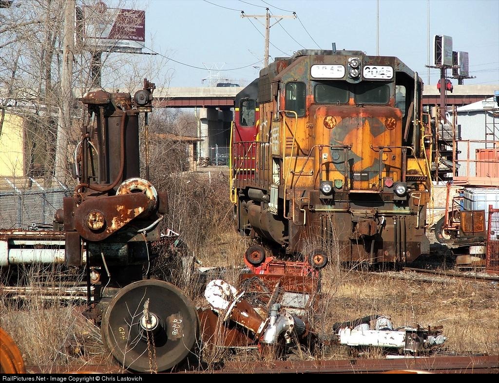 | An old Chessie GP40 relocated toward the front of the shops, sits among debris awaiting it's rebuild date. This particular unit will get a second chance at life operating as BNSF GP38-2 2020. |