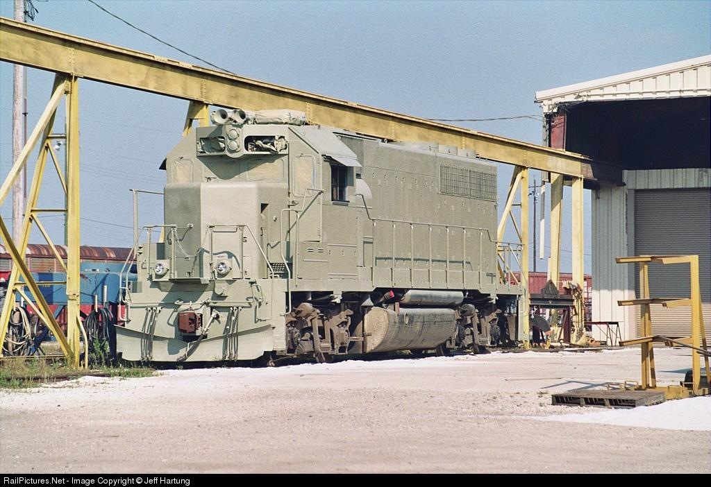 FEC 411 in primer paint at Watco shops awaiting shipment to NSB shop for a coat of FEC blue.