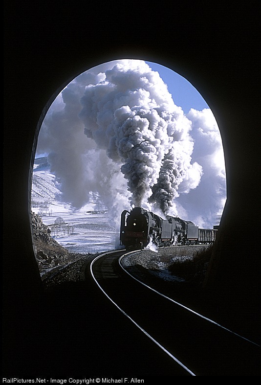QJ's 6840 & 6882 enter tunnel two on the eastbound climb to Jing Peng Pass.