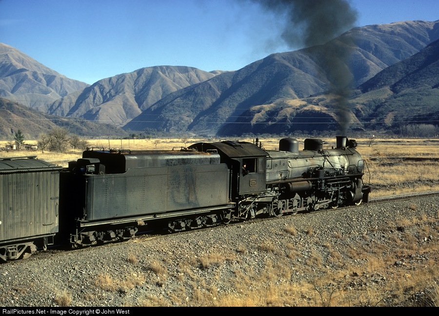 Leaving Salta, Argentina for the climb to the Chilean border via Ramal C14, the northern "Transadino", and one of the great mountain railways. These Skoda 2-10-2's were my favorite Argenitine engines.