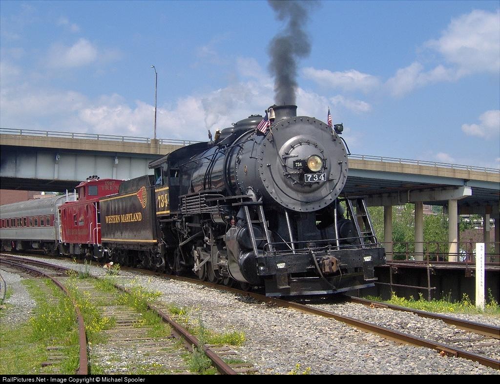RailPictures.Net Photo: WMSR 734 Western Maryland Scenic Railroad Steam 2-8-0 at Cumberland, Maryland by Michael Spooler