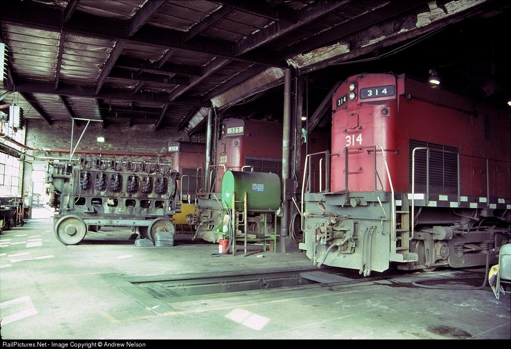 GB&W C-424s rest between assignments in the "400" stalls at Norwood Roundhouse