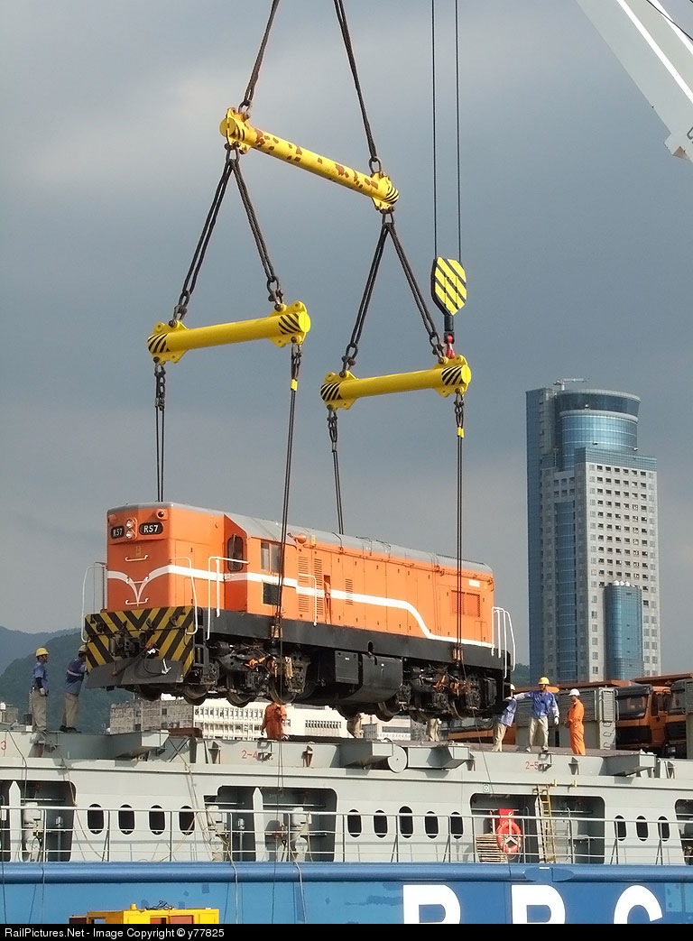 | The motorcycle R57 of serial number of electric motor locomotive of diesel oil of Railway Bureau of Taiwan is the preparation work of the seaport in Keelung, plan to send friendly national African Republic of Malawi. |
