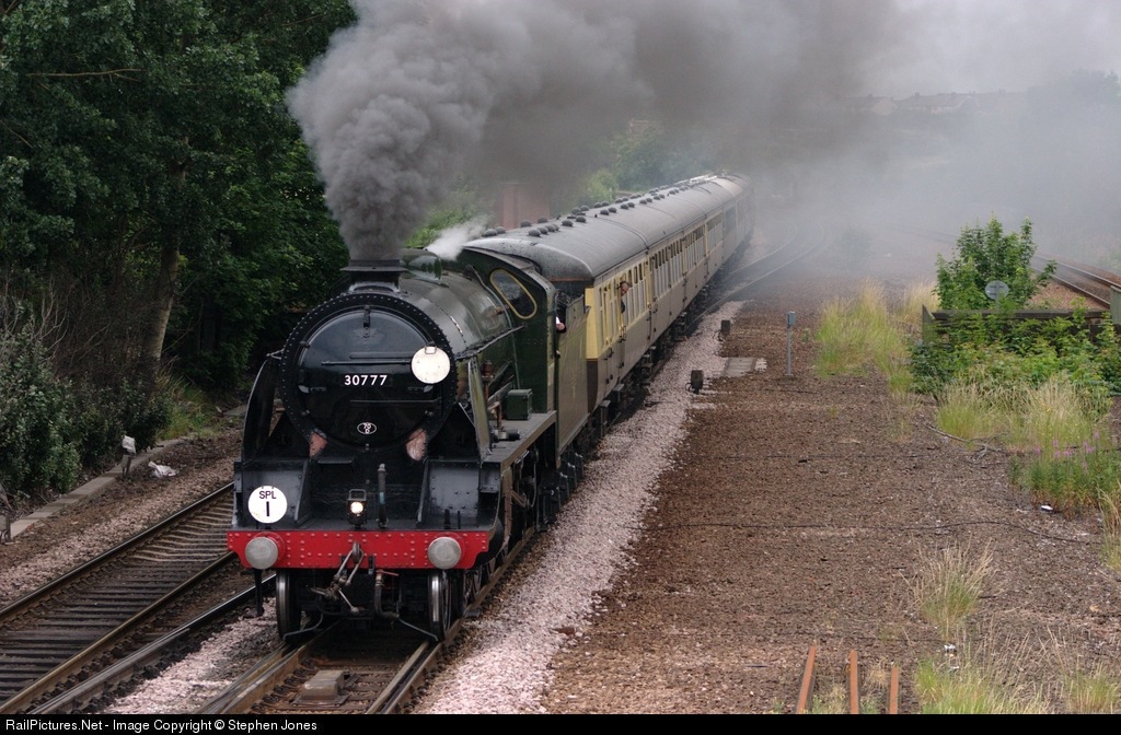 | 30777 'Sir Lamiel', with the Ebor Express, on its way back to Tyseley, after a day out at York. |