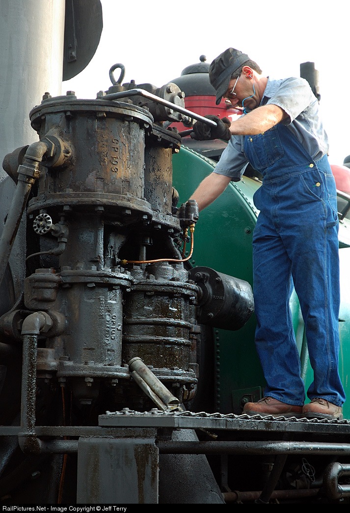 Mike Grimm starting the air compressor on this 1926 Baldwin 2-6-2T.