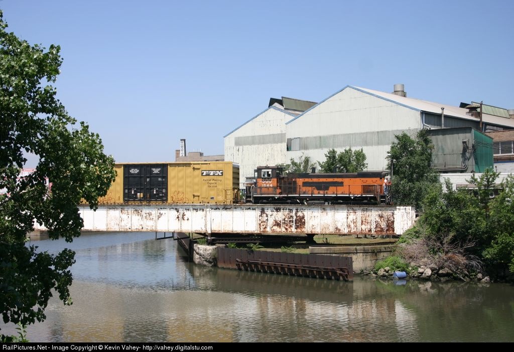 CP's Kingsbury job crawls over the ancient swing bridge toward the Kingsbury Line and eventually Goose Island.