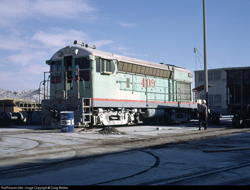 SWPC (aka Mojave Northern) H20-44 409 (ex-69, nee-UP 1369) rests at the cement plant before heading out again to the quarry.