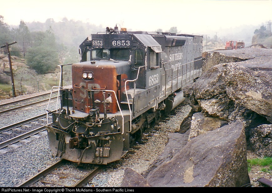 RailPictures.Net Photo: SP 6853 Southern Pacific Railroad EMD SD45T-2 at Woodford, California by Thom McAdams - Southern Pacific Lines
