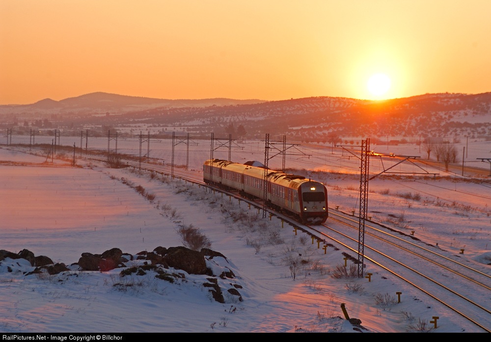 The sun rise of a new cold day find this ic express on the way to Thesalonki at the valley of Theves