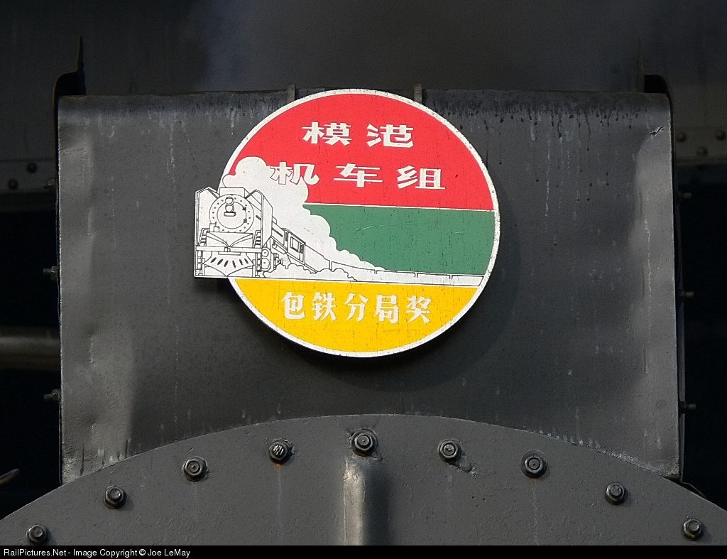 | The cool QJ logo that only the 6988 possesses, attached to the front of its smokestack. It was applied sometime in the week prior to the excursions. Anyone care to translate? |