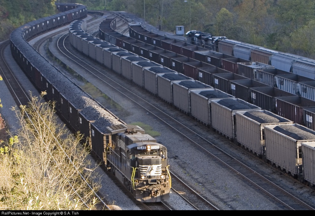 In the very last light of the day 81W returns to Williamson with its loads led by a C39-8 on borrowed time. To the far right is the 56Z from photo id: 162353; now tied town awaiting a crew to continue east.