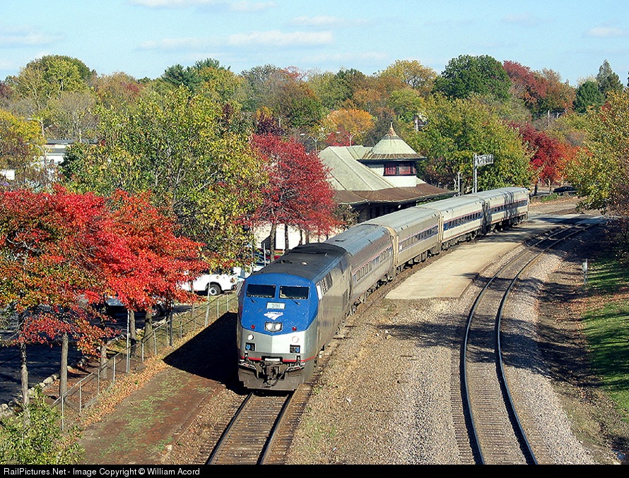 Westbound Amtrak Ann Rutledge at Kirkwood on a beautiful autumn day with fall colors near their peak!!