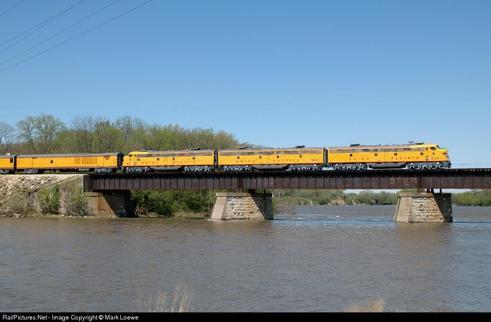 | UP 949 leads the executive business train from St Louis, MO across the Kankakee River Bridge in Wilmington, IL enroute to Global I in Chicago, IL |