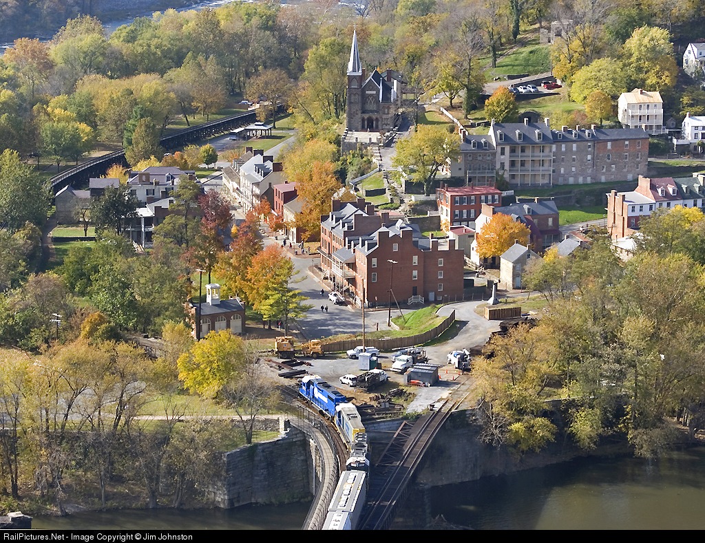 The Winchester local passes enters the Shenandoah Sub past the historic lower town of Harpers Ferry on a beautiful Autumn day