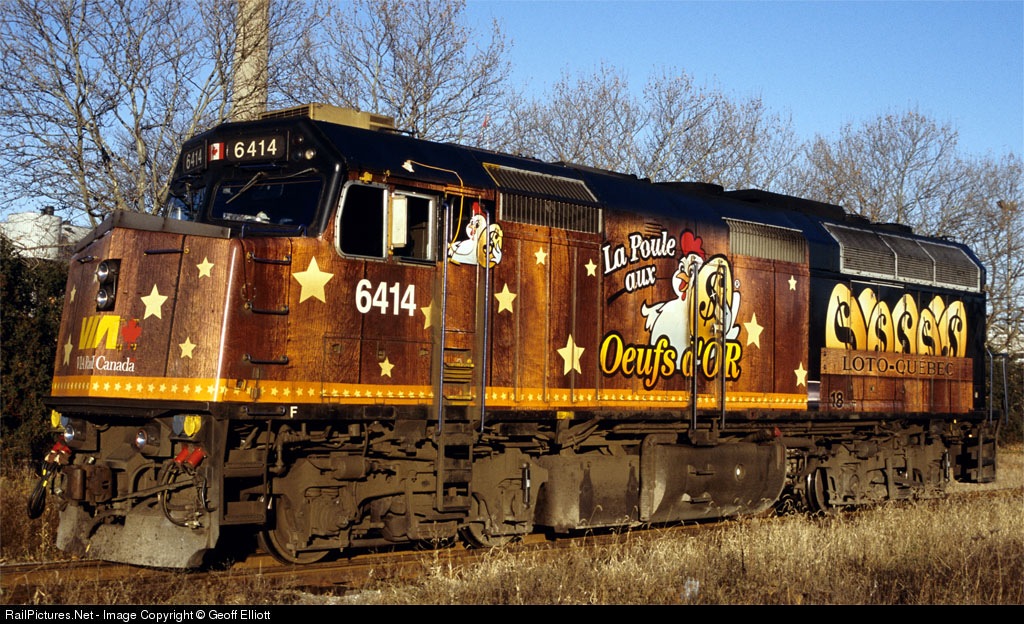 VIA 6414, painted in Quebec-Loto's "Golden Egg" scheme, has cut away from his train to be wyed after arriving in Windsor late in the day. 6414 will head out on train #76 in about an hour and a half bound for Toronto.