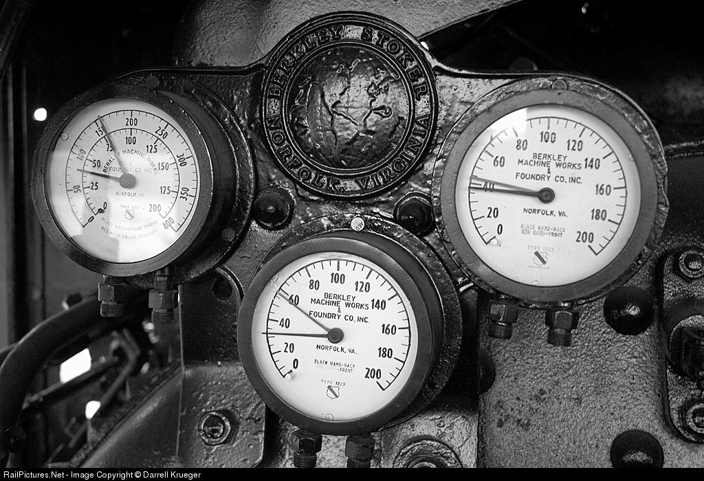 A trio of gauges adorns the cab of the Gainesville Midland 209.
