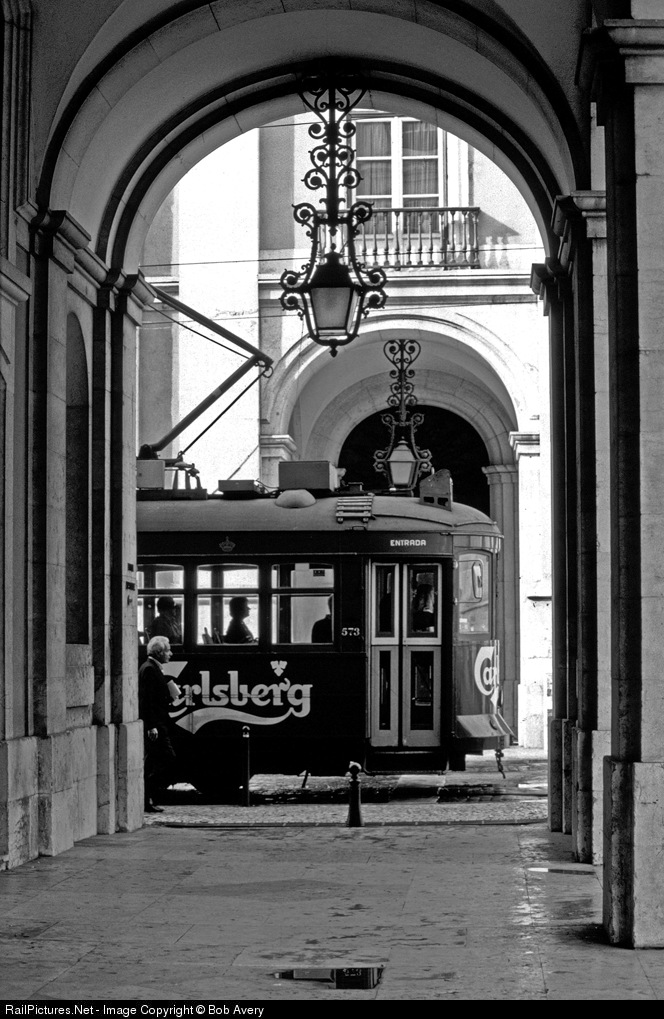 | This tram - in all over livery advertising a well known beer - pauses just outside the Praça da Comércio, outside the main Post Office.