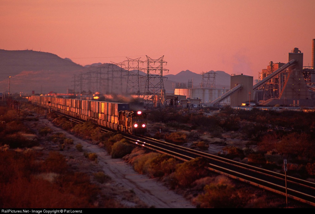 | Coming out of the yard, the train will hit some grade in about 1 mile. Tucson Electric Power Plant is preparing the night shift. |