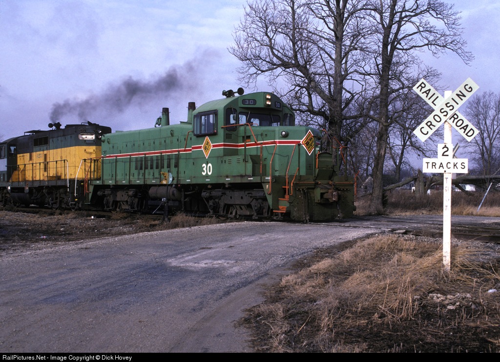 | "Rare and rarer", Chicago & Illinois Midland RS1325 #30 on loan to KJRY with ex CNW HE15 cCummins reengined GP7, at La Harpe, IL. |