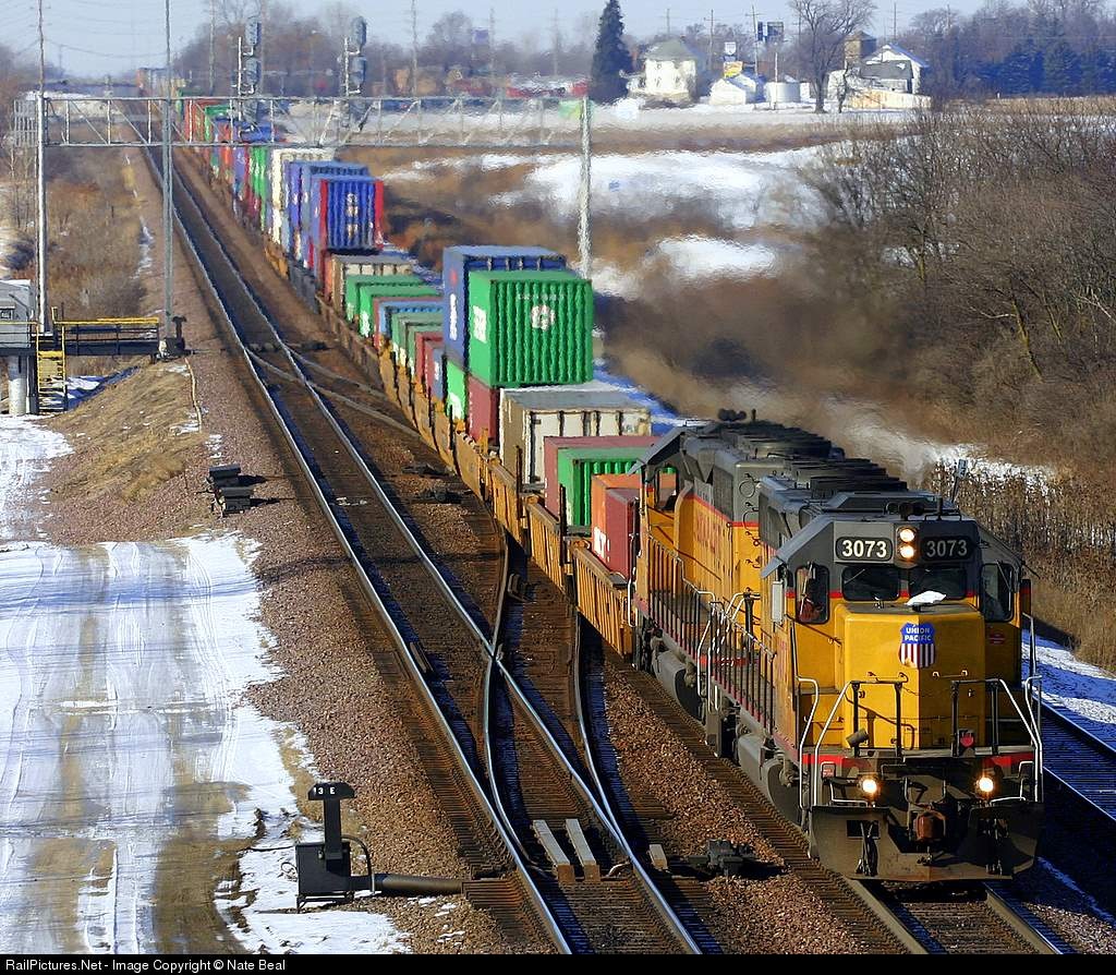 | My first pic of 2007 in my favorite town to railfan in in Chicago, the good thing about the UP line to and from Proviso is you still see a lot of 2nd generation power (SD40-2's, C40-8's) leading trains. |
