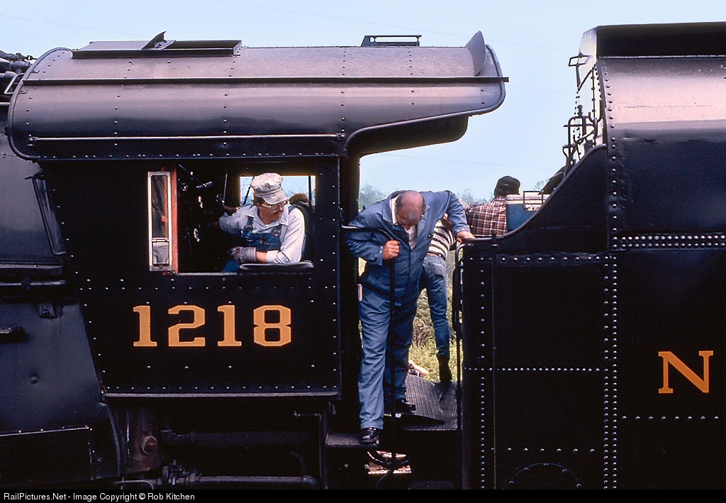 The crew is watching carefully as Norfolk & Western 1218 is negotiating the wye at Front Royal, Virginia.