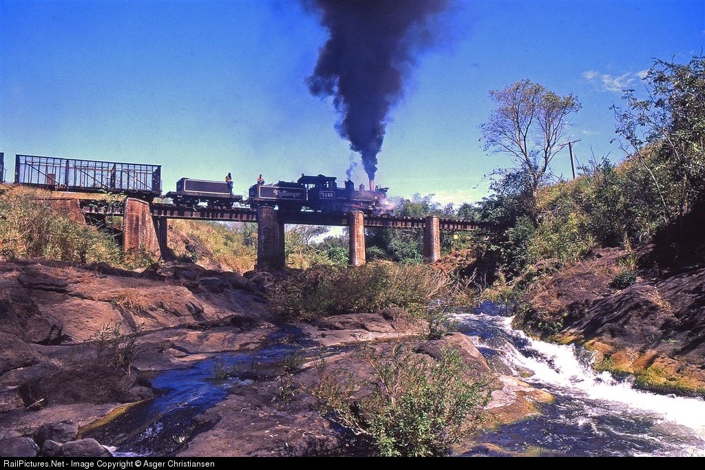 On its way to get the cars filled with sugarcanes, engine E 1355 (Baldwin 1920) crosses Rio la Virga.