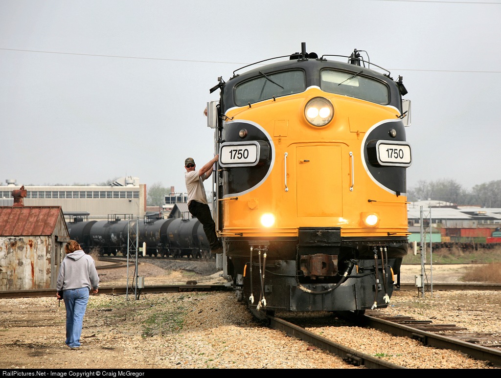 | The Peoria & Western crew picks up order from the Tazewell & Peoria dispatcher at Bridge Jct. This train into TZPR's East Peoria yards, is the maiden run of the "new" P&W FP9's on a freight run. |