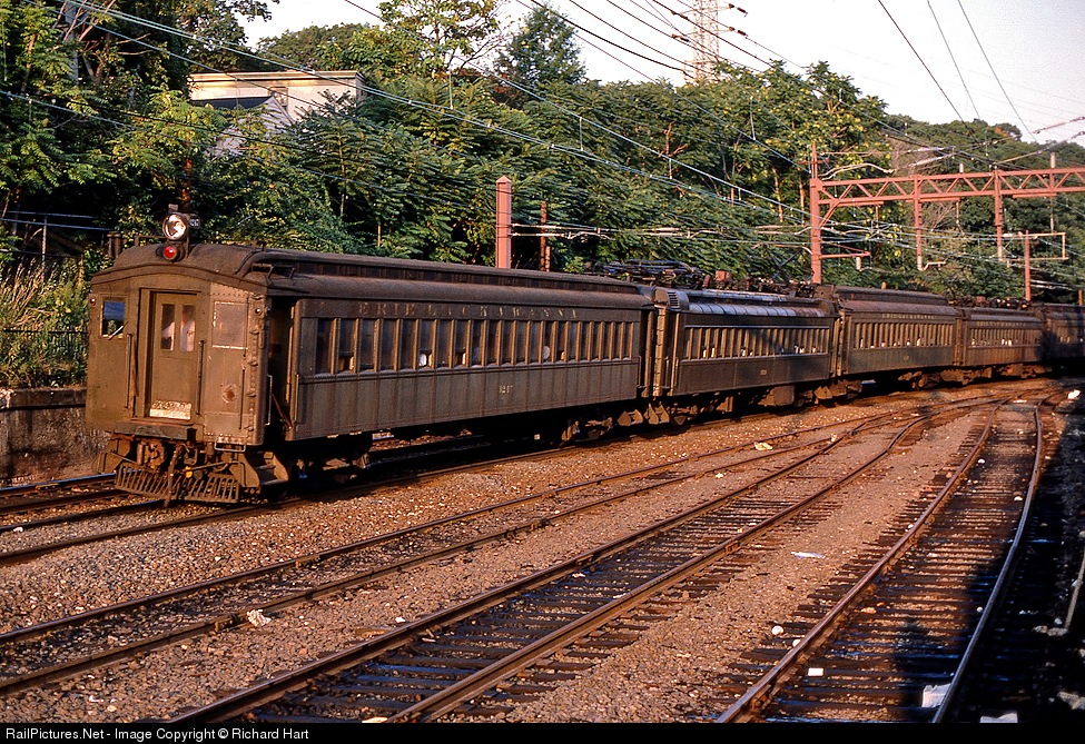 | All 3 types represented here: Lo-trailer, motor, and Hi-trailer. Westbound just east of station. K-64 scan. |